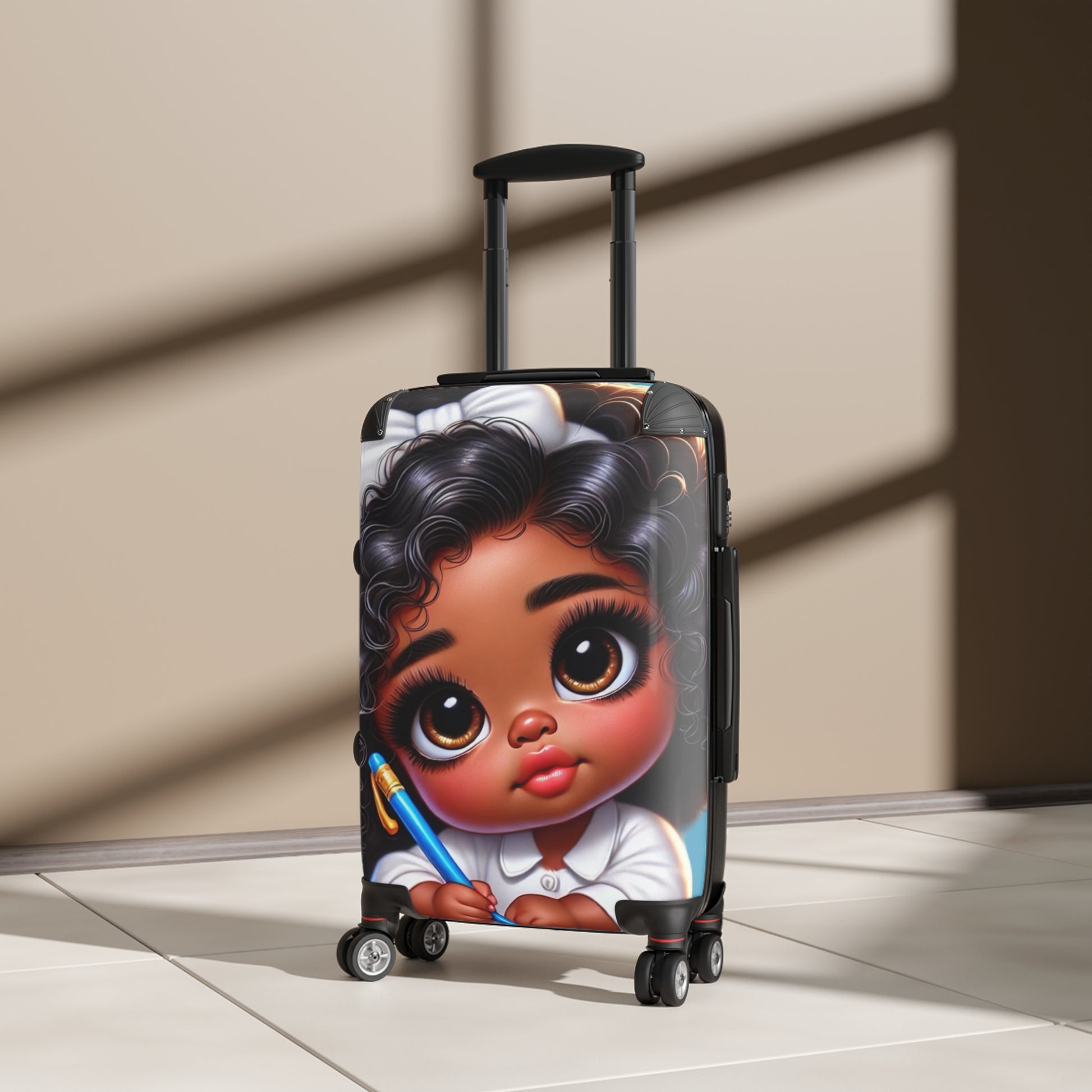 Please note: Your design is printed on a canvas that may slightly crease near the suitcase's edges.